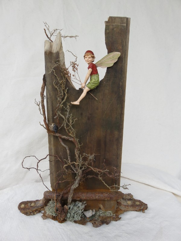 Hoch sitzen und weit schauen, das gefällt nicht nur uns Menschen. Der Elf sitzt gemütlich in seinem Brett, das von einem verrostetem Griff gehalten wird. h: ca. 36 cm / breiteste Stelle am Griff ca. 26 cm