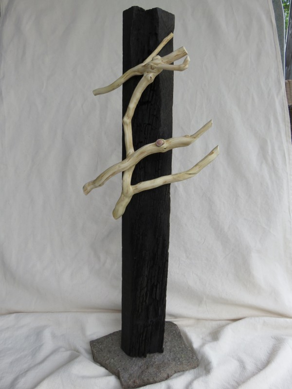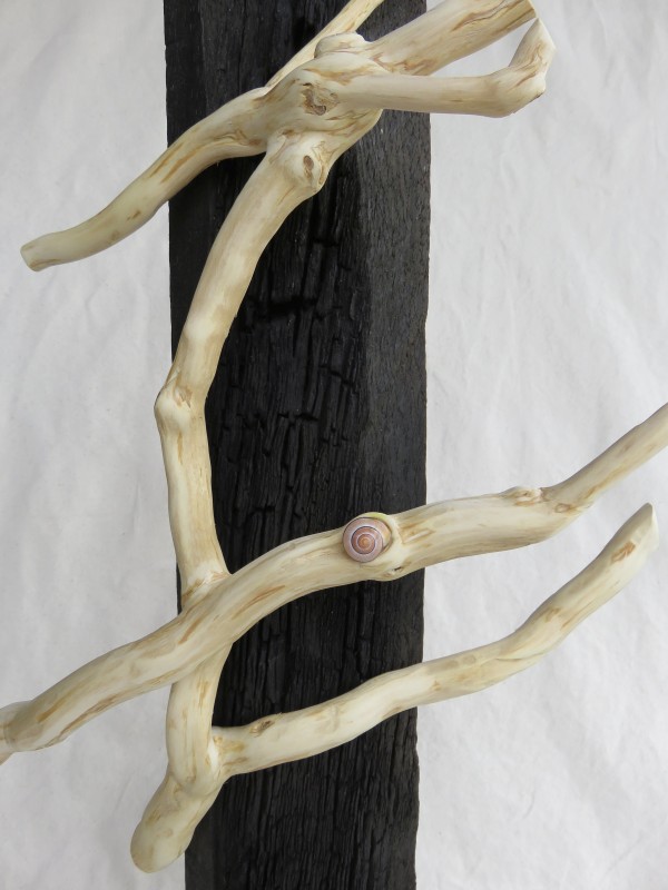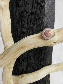 Holz Mooreiche schwarz, Ast Efeu, Bänderschnecke, h: ca. 78 cm