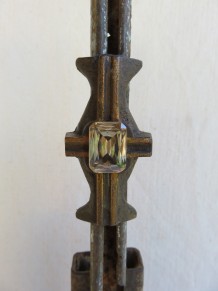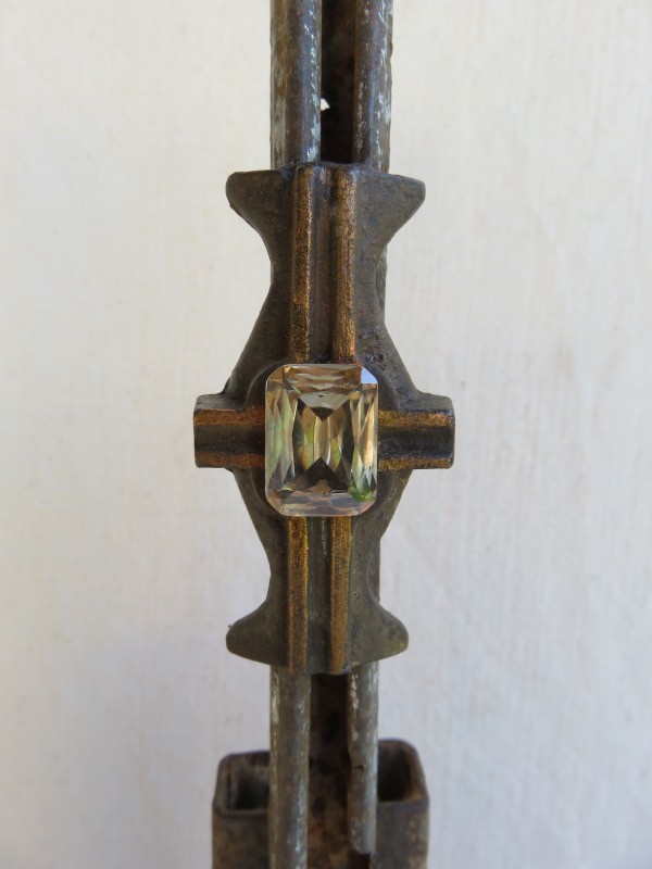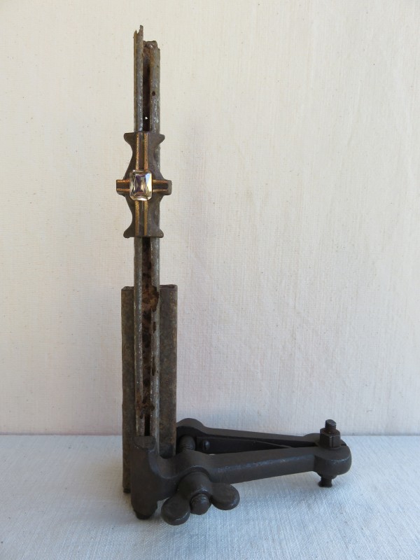 Eisen mit Champagnerfarbigem Glasstein, Fuß: Altes Werkzeug, h: ca. 16.5 cm / b: ca. 31 cm