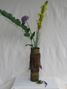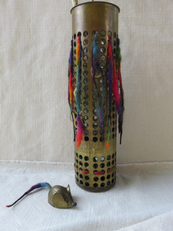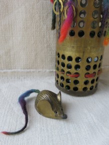 aus Messing mit kleiner Maus, innen ein Glas, h: ca. 31 cm / b: ca. 8 cm