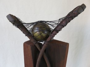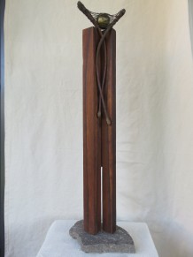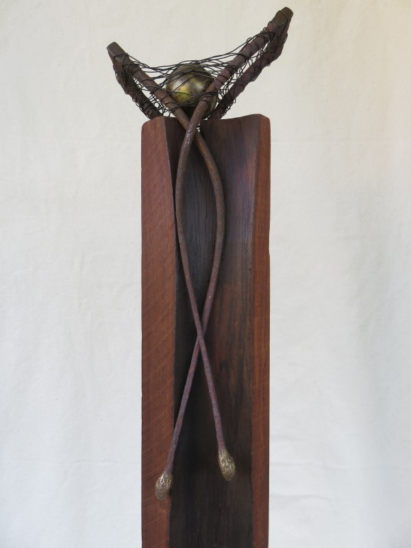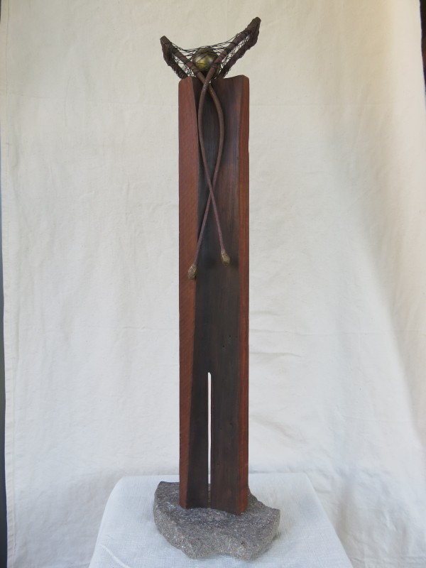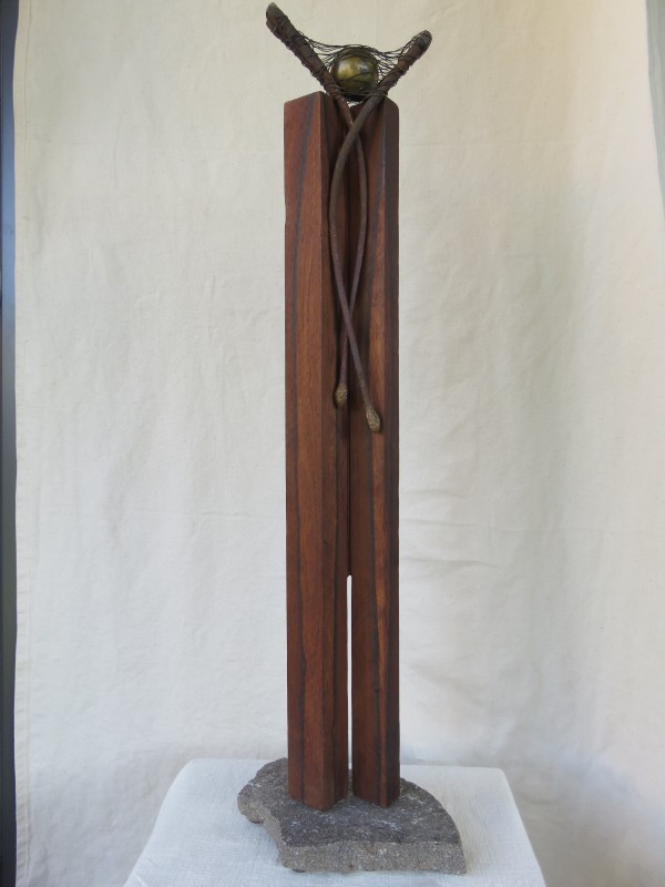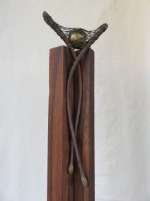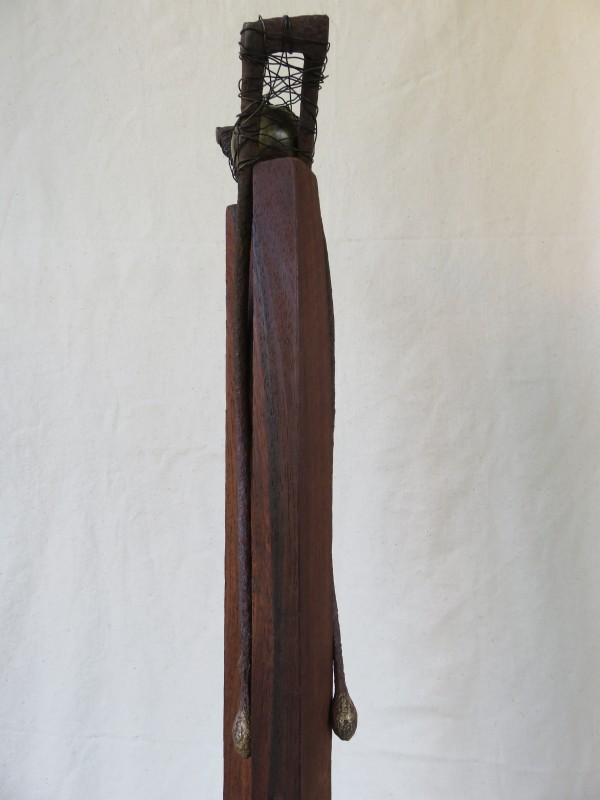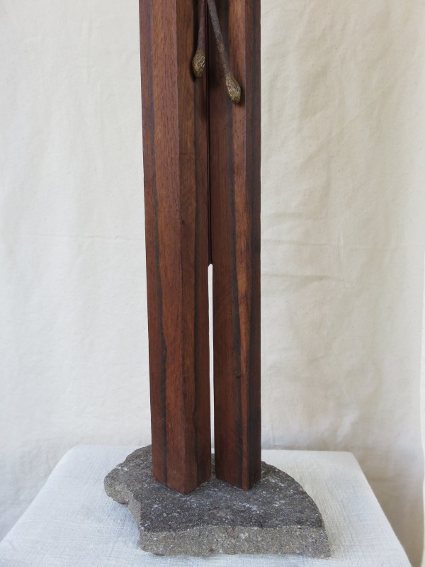 Holz Schwarznuss, Eisen und Messing, Fuß: Steinplatte, h: ca. 92 cm / b: ca. 22 cm